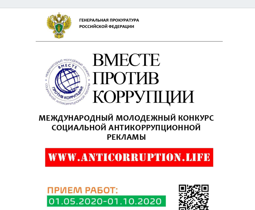 Генеральной прокуратурой Российской Федерации в текущем году организован Международный молодежный конкурс социальной антикоррупционной рекламы на тему «Вместе против коррупции!»