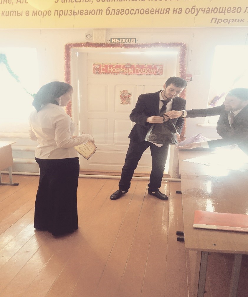 17.11.2016в МБОУ «ООШ с. Чеччель-Хи» был проведен конкурс «Тарикат» между учащимися 8-9 классов. Итоги конкурса подвело жюри в составе: