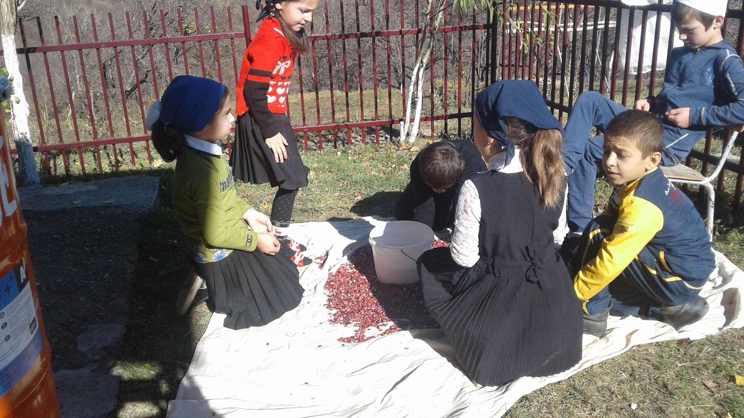 Дети очищают фасоль. Сладким будет суп из этой фасоли.